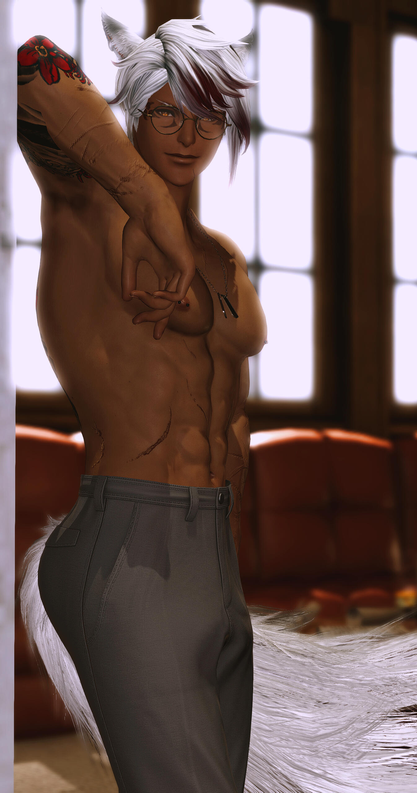 Malphas left his tribe in Ala Mihgo to become a multi-skilled fighter, desperate to try and save his people from the grasp of the garlean empire and anyone else that might try to ensnare them. He began traversing the realm in search of masters, catching the eyes of the soldiers of Ishgard when they spotted him using the surrounding trees to fell one of the fiends plaguing the snow-capped region. After the Dragonsong war ended, he admitted to having the Echo by mistake, and ultimately ended up roped into being a Hero of Light.As happy as he'd be to help, the pressure to conform and be perfect began to take it's toll on him. Once he began heading to old sharlayan to secure diplomatic favors and the like, he started to voice his displeasure at being ordered around to the scions. it was the twins that vouched for Malphas being stretched too thin, and he was at last given a chance to do things other than following orders right away.Malphas juggled assisting as the Hero of light and exploring all of Eorzea. Aside from growing in power as a dragoon, he has taken up red mage, warrior, bard and other classes. though it is a single step in a LONG ROAD TO GAINING POWER. aLL TO ENSURE NO ONE EVER ENDURES THE PAIN HIS TRIBE HAD WENT THROUGH.Due to the events of endwalker, malphas was haunted by nightmares and found himself feeling hollow or distanced from his body. he'd taken a break from patrols due to it, choosing to go to the new world with K'has in an effort to escape these nightmares. along the way he's come to the realization that between his pact with a voidsent and the nightmares, he is one of few that stands between the innocent of the star and the horror he and k'hasumi have faced both together and separately. this realization has sent him down the path of vengeance, finding those who would profit from the pain and death of innocent people and surrendering their aether to his voidsent.What was once his go-to facade of being the 'himbo' has given way to an commanding walk, sharp eyes and deeper rumble to his tone.